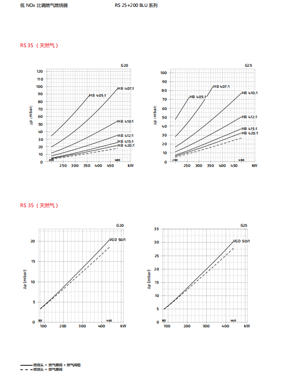 RS BLU 系列燃烧器的出力范围为 125 - 2400kW。