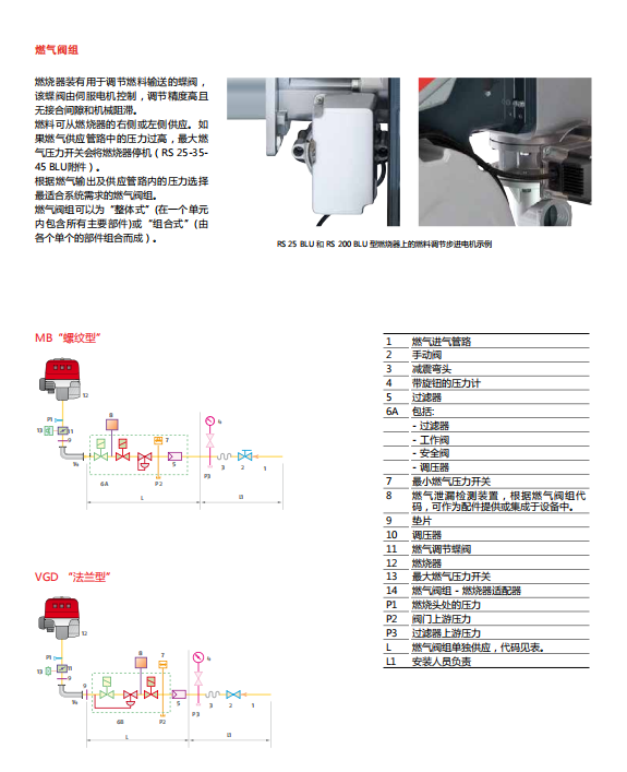 RS BLU 系列燃烧器的出力范围为 125 - 2400kW。