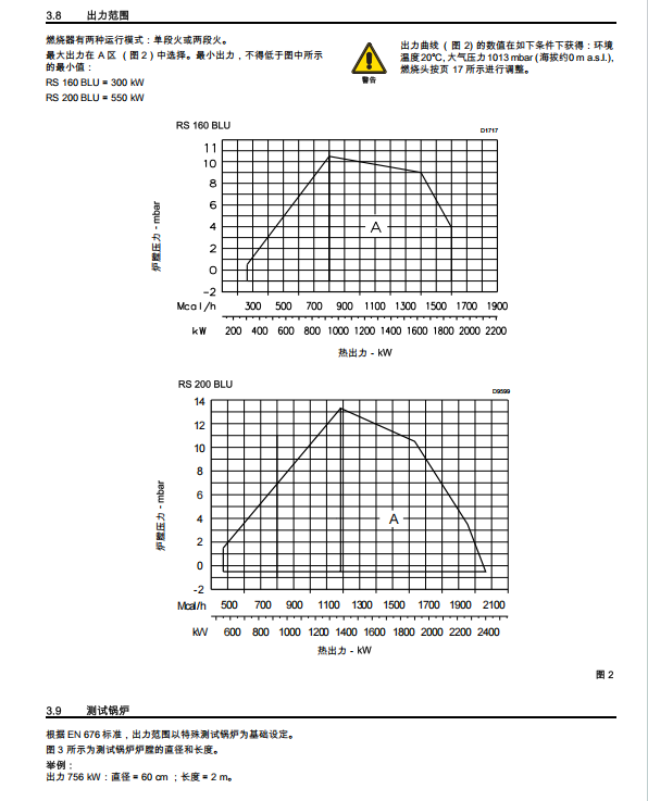 RS BLU 系列燃烧器的出力范围为 125 - 2400kW。