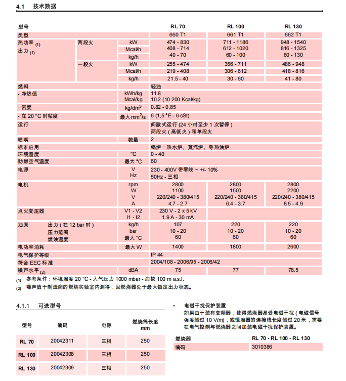 意大利RIELLO利雅路燃油燃烧器RL130,RL130/M