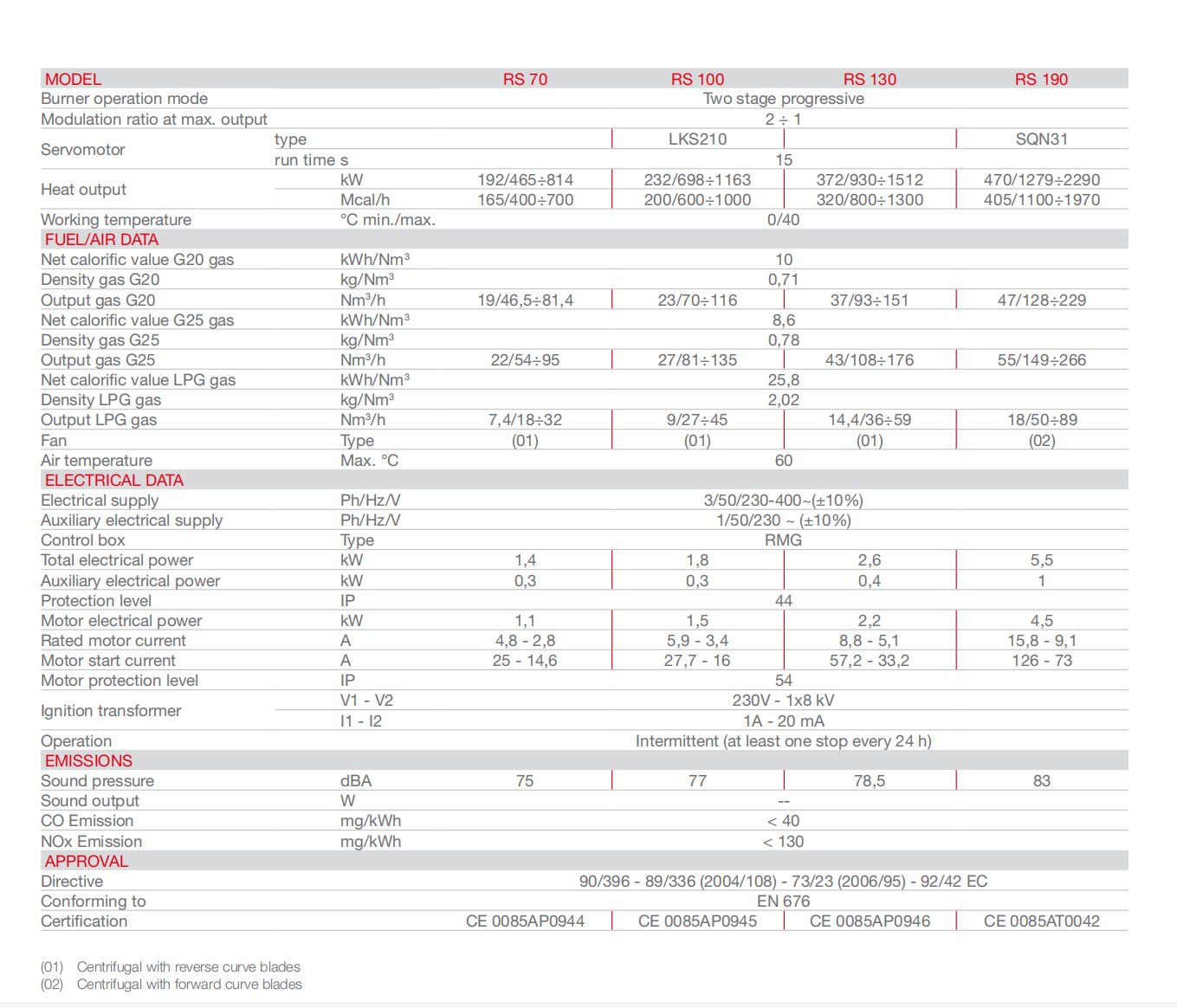 利雅路RS100,RS100/M燃气燃烧器