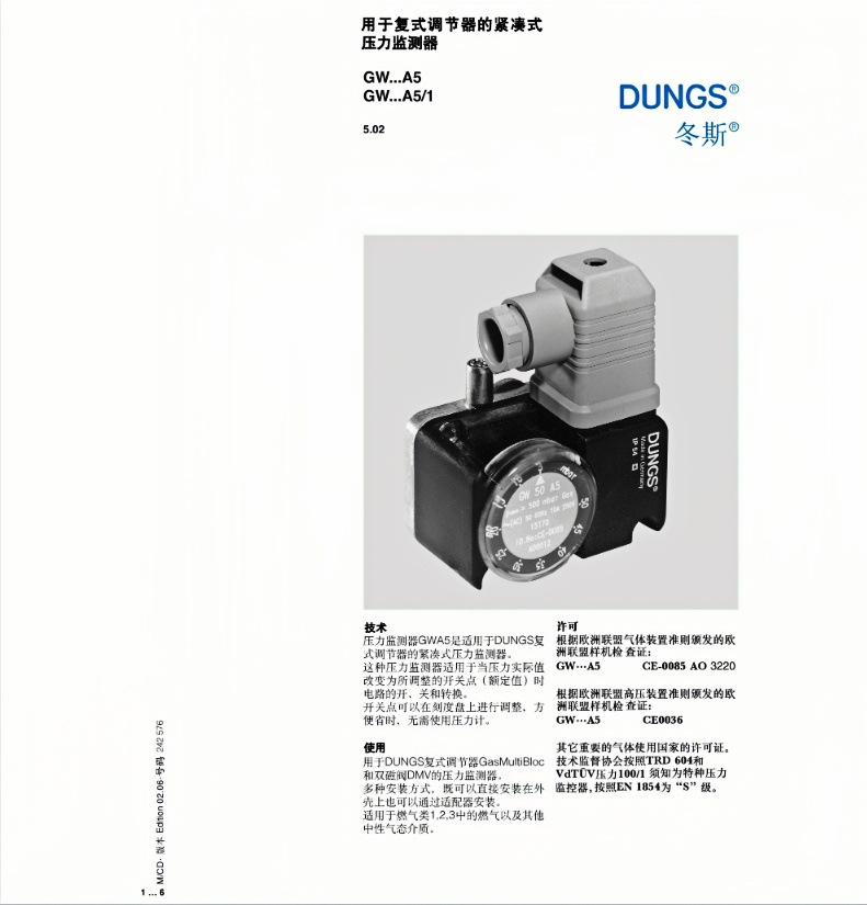 德国冬斯DUNGS燃气压力开关 GW3A6