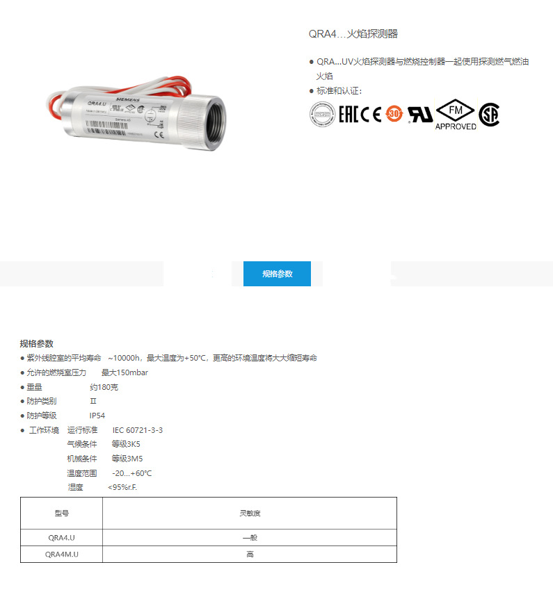 德国SIEMENS西门子火焰探测器QRA2