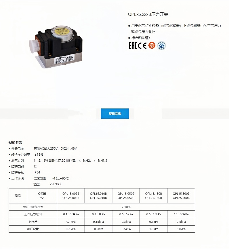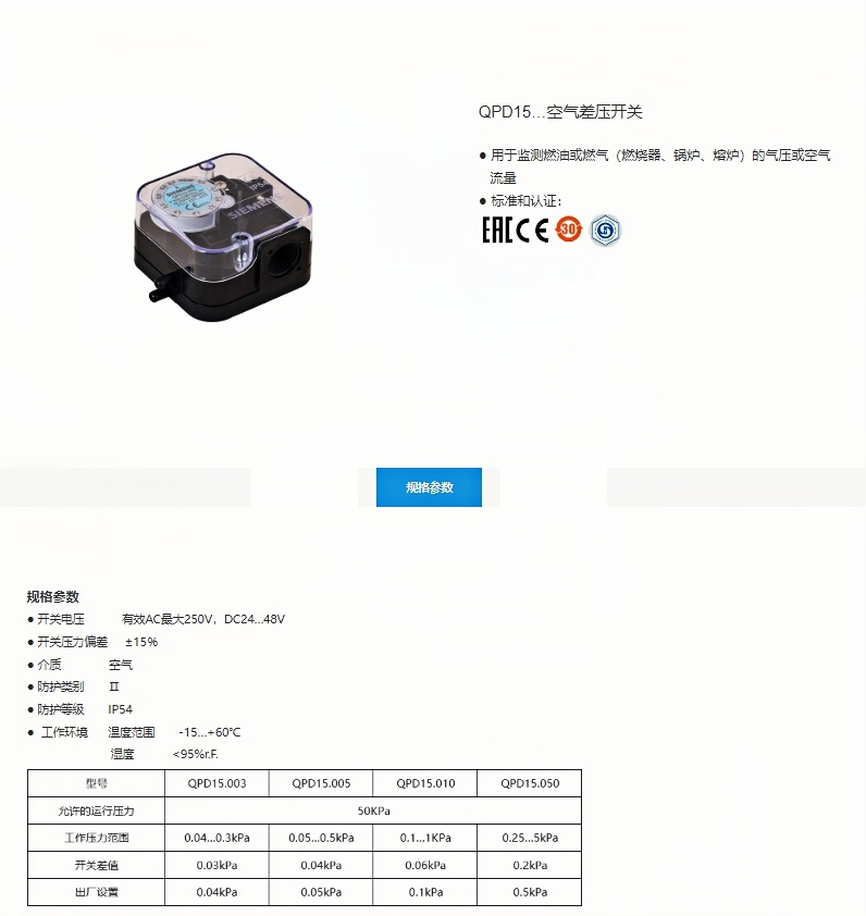 德国SIEMENS西门子压力开关QPL15.050